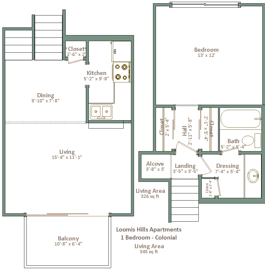 Modelo de apartamento: Colonial$1,1861 Dormitorio, 1 Baño, 671 sq ftDisponible Ahora![]()