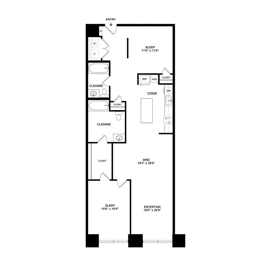 1 Dormitorio, 1 Baño, 902 pies²Disponible AhoraGalería del Modelo