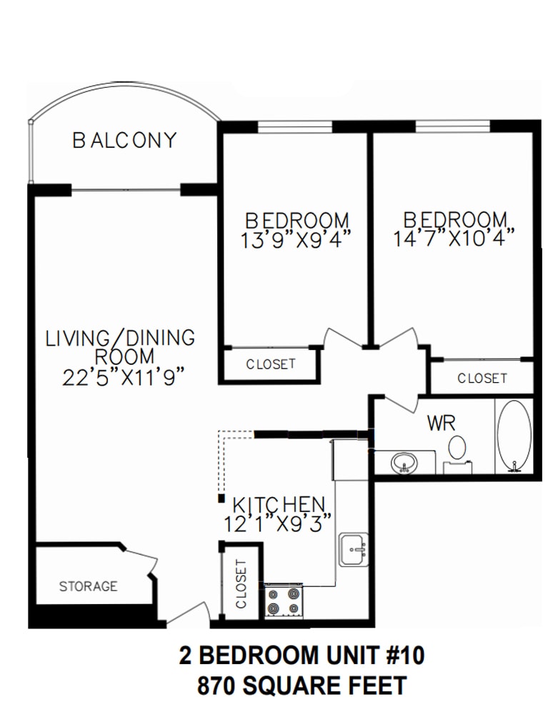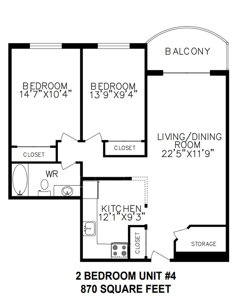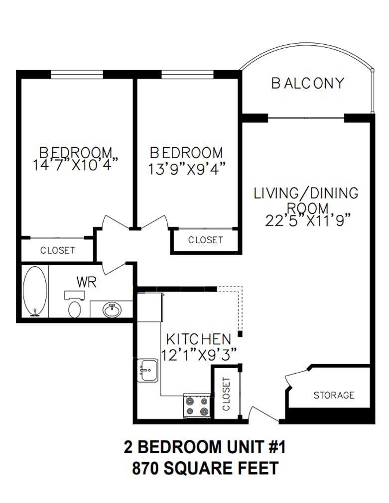 2 Dormitorios, 1 Baño, 870 pies²Disponible AhoraGalería del Modelo