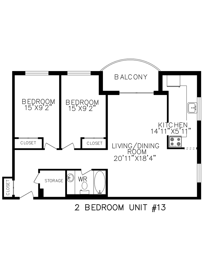 2 Bedroom - Plano 1 ![]()