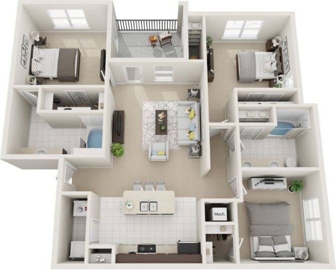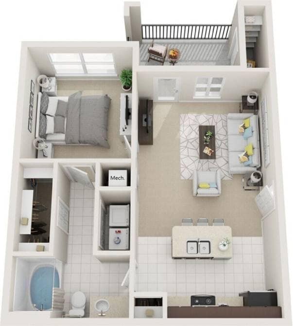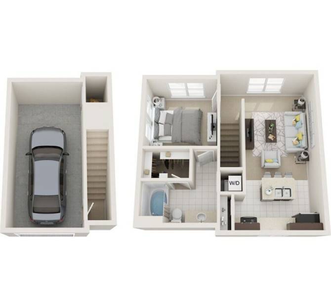 1 Dormitorio, 1 Baño, 750 pies²Disponible AhoraGalería del Modelo