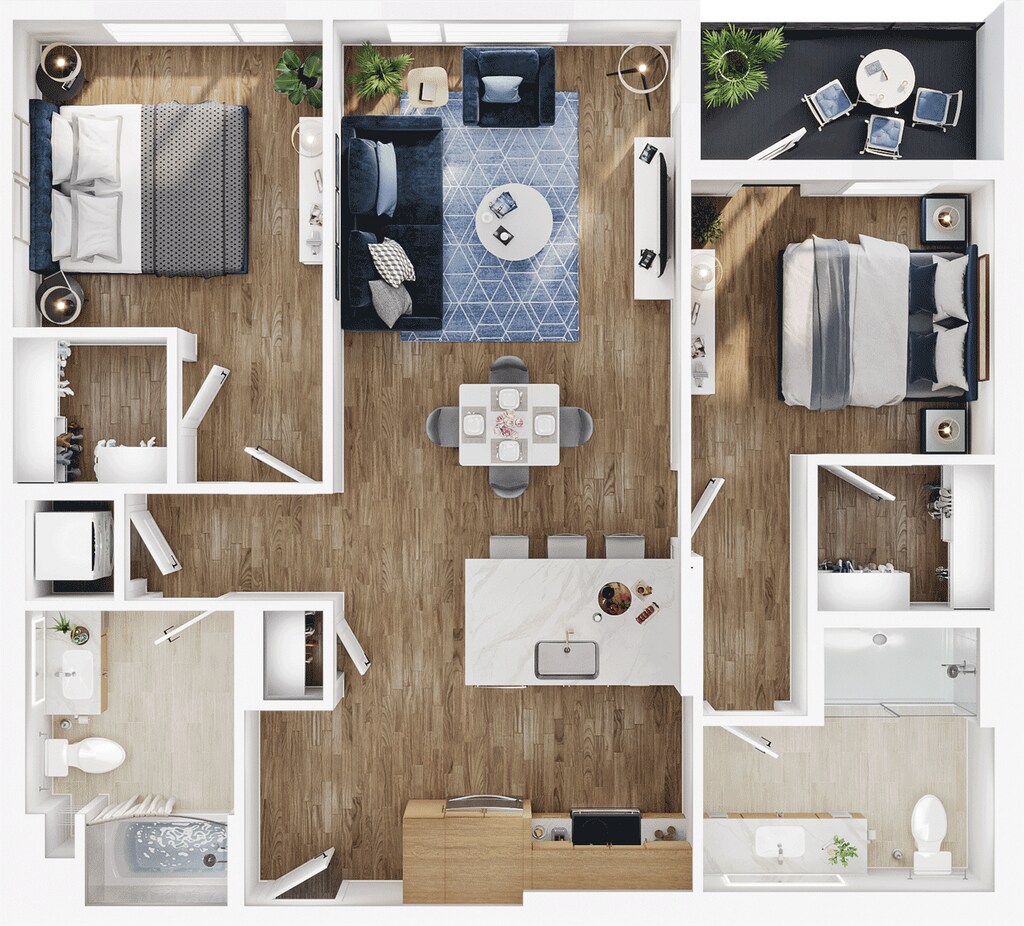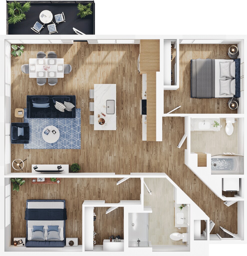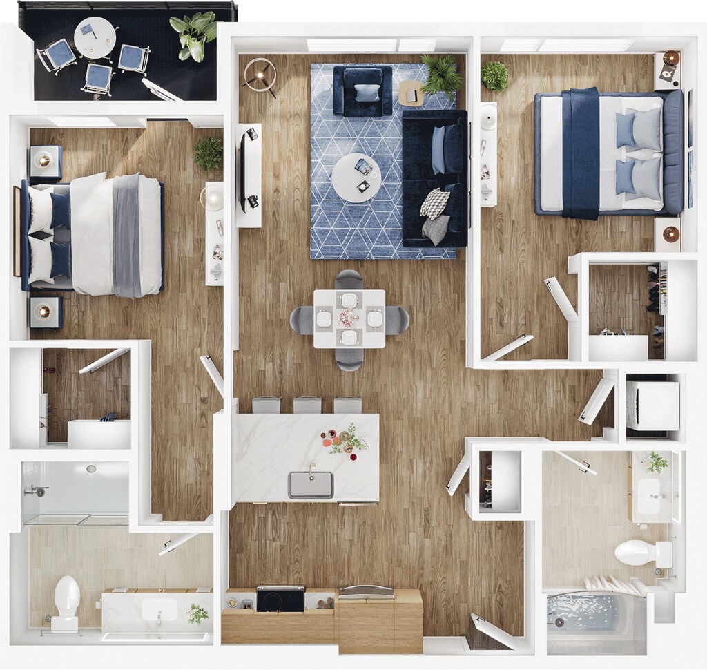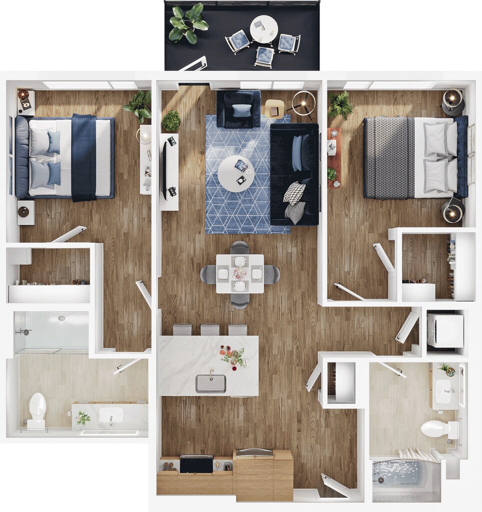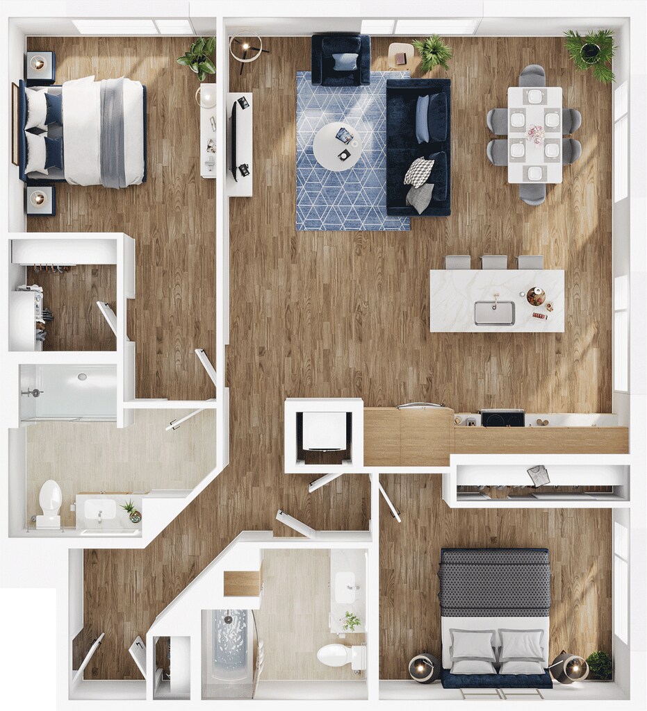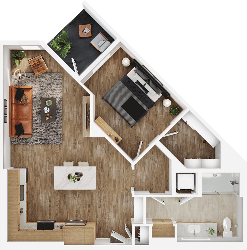 Modelo de apartamento: A1.4Desde $3,5551 Dormitorio, 1 Baño, 736 sq ftDisponible Ahora![]()
