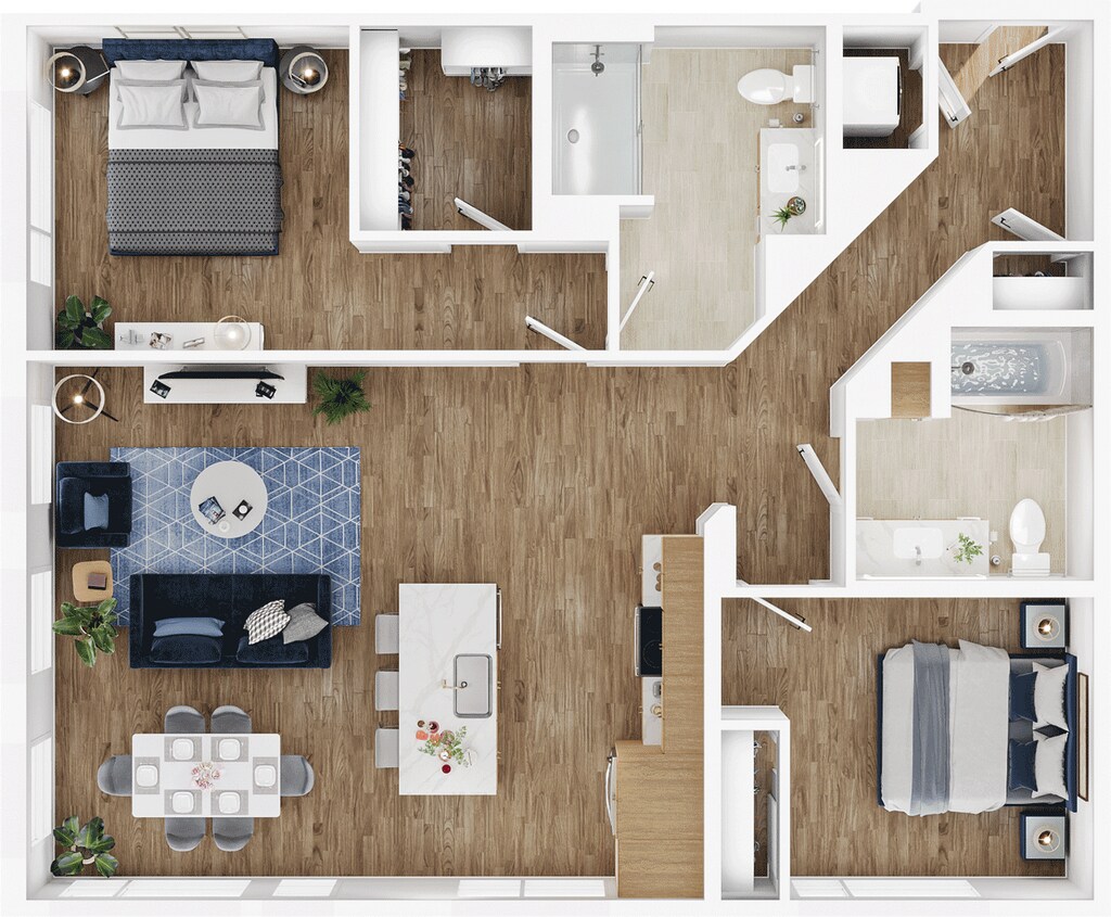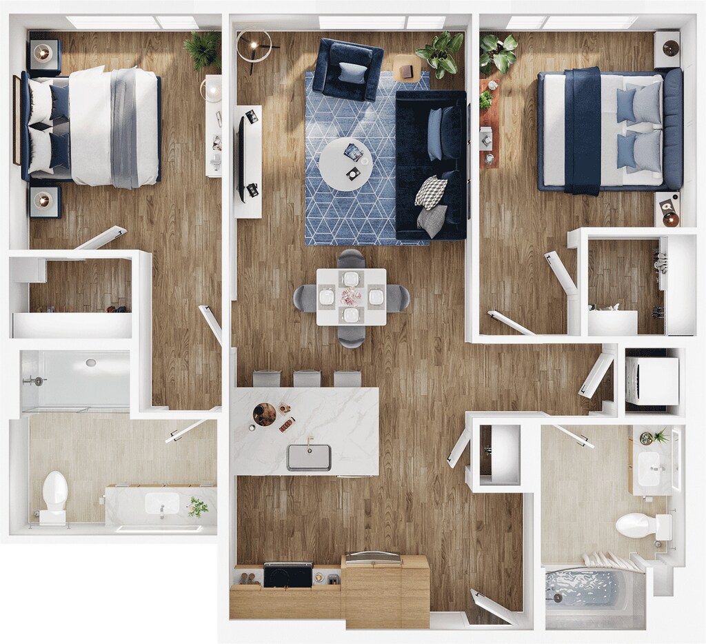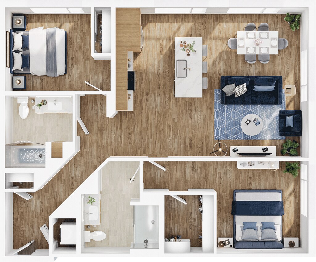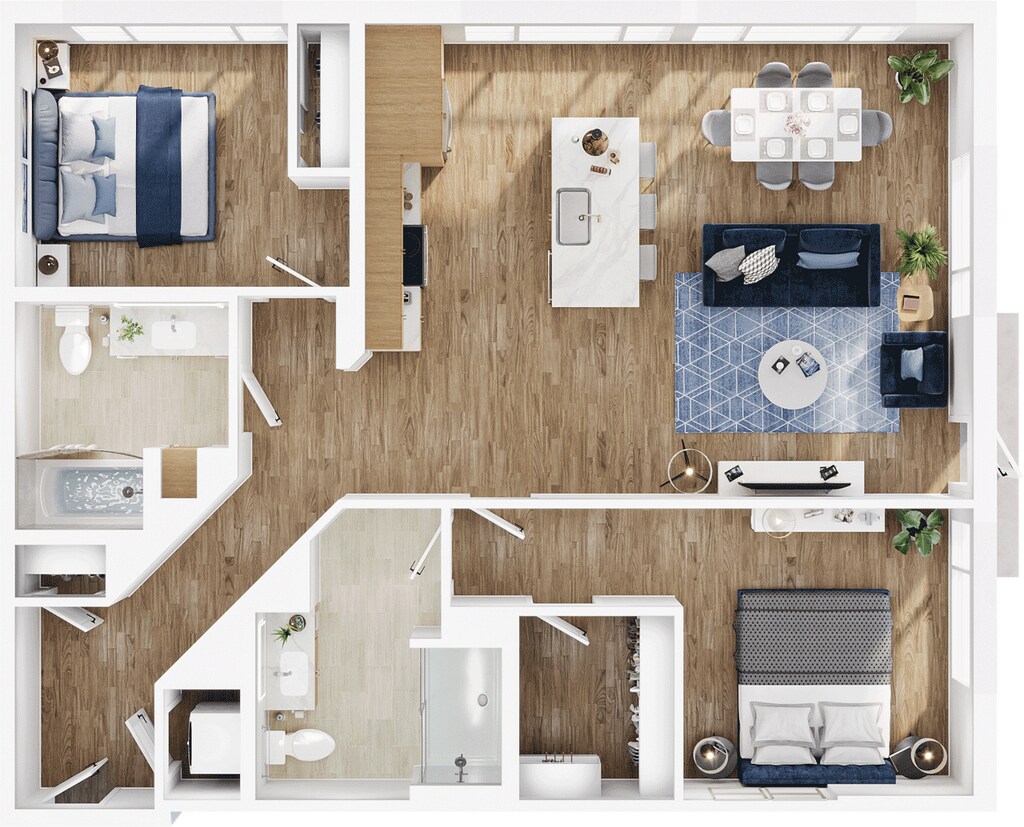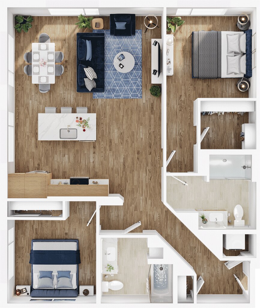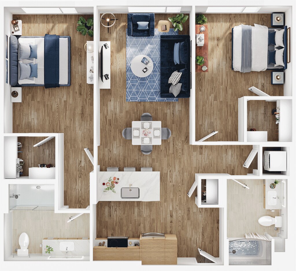 Modelo de apartamento: A1.4Desde $3,5551 Dormitorio, 1 Baño, 736 sq ftDisponible Ahora![]()