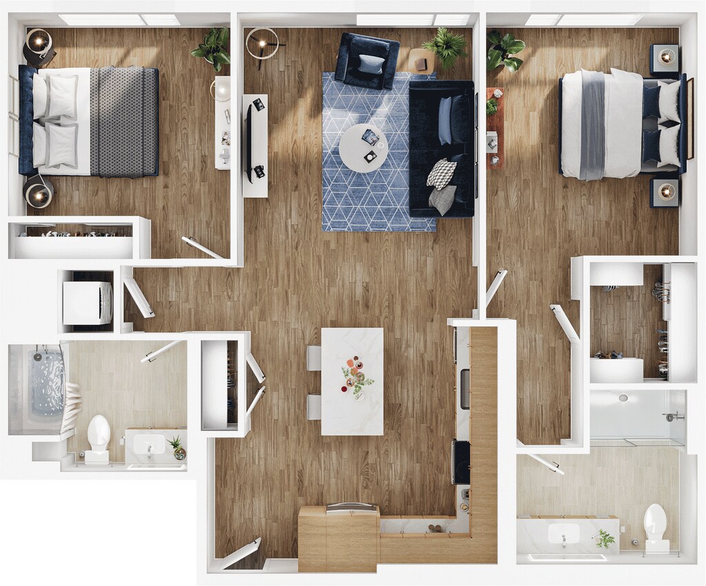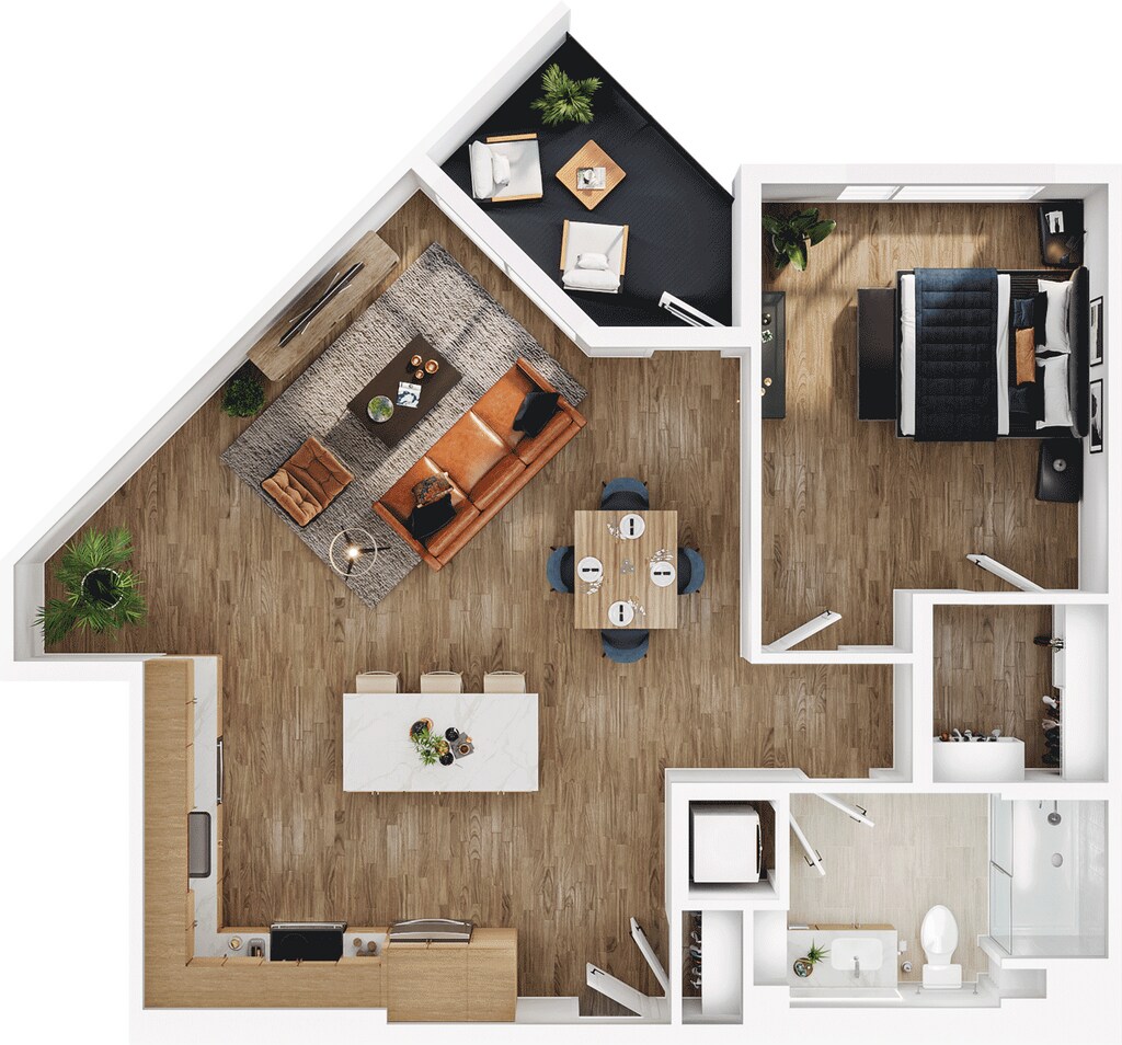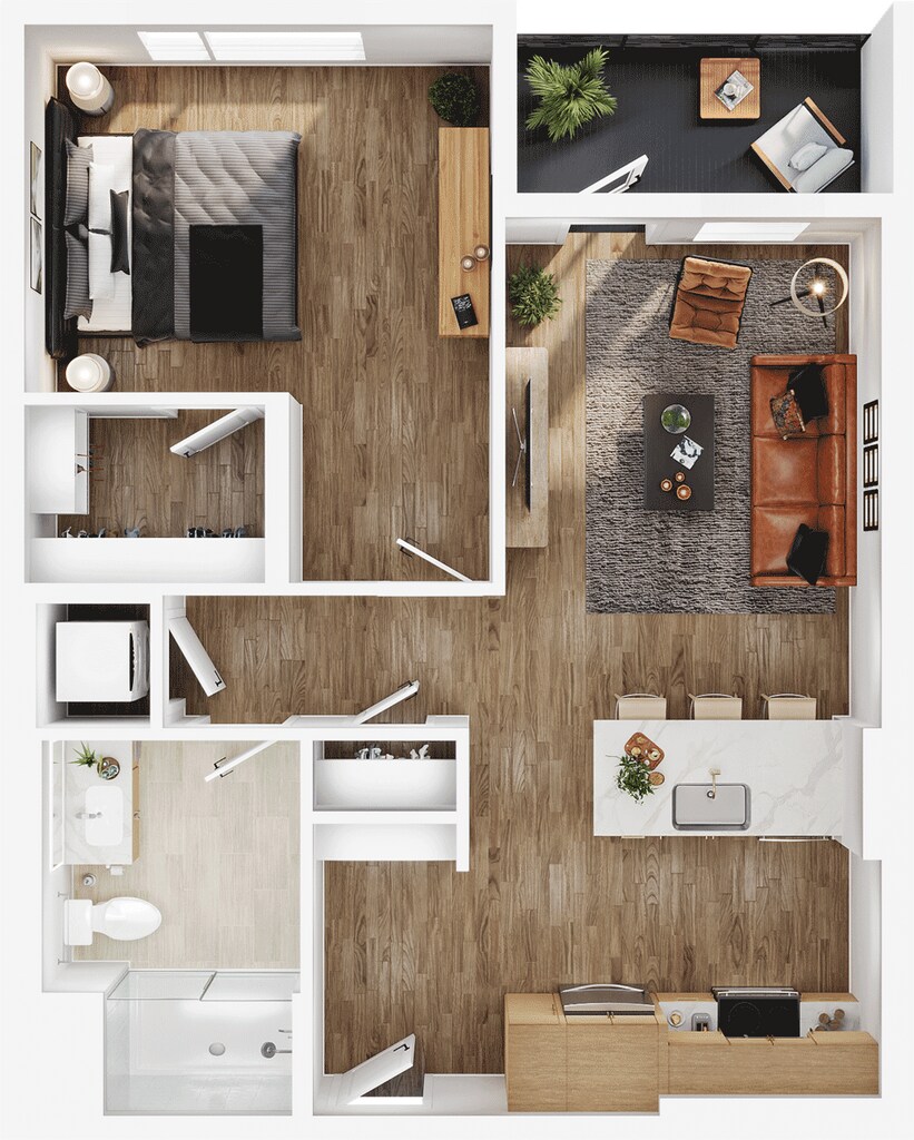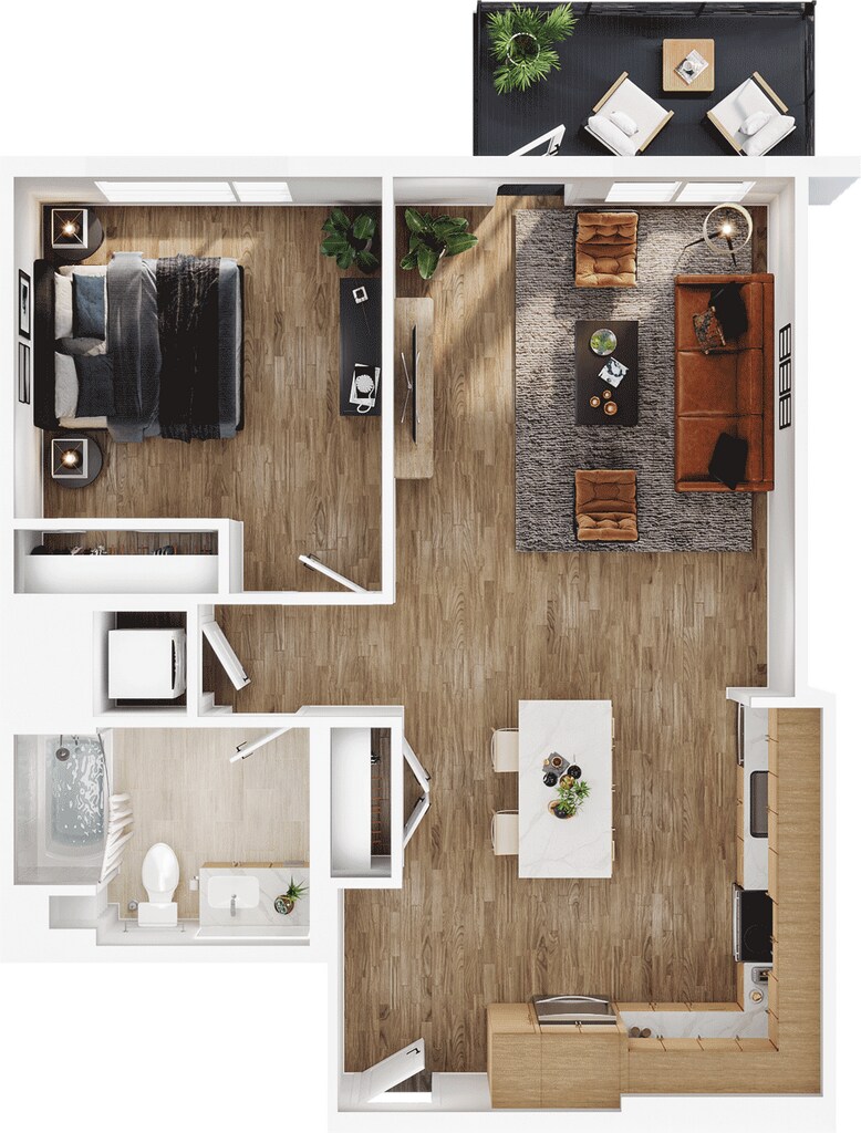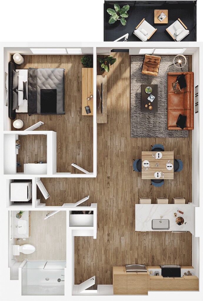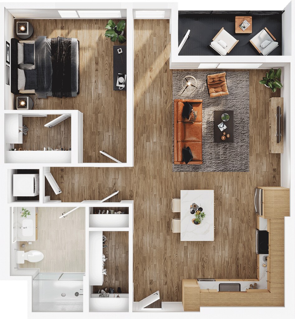 1 Dormitorio, 1 Baño, 729 pies²Disponible AhoraGalería del Modelo