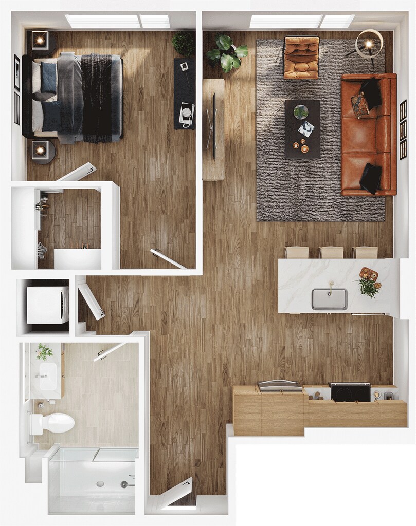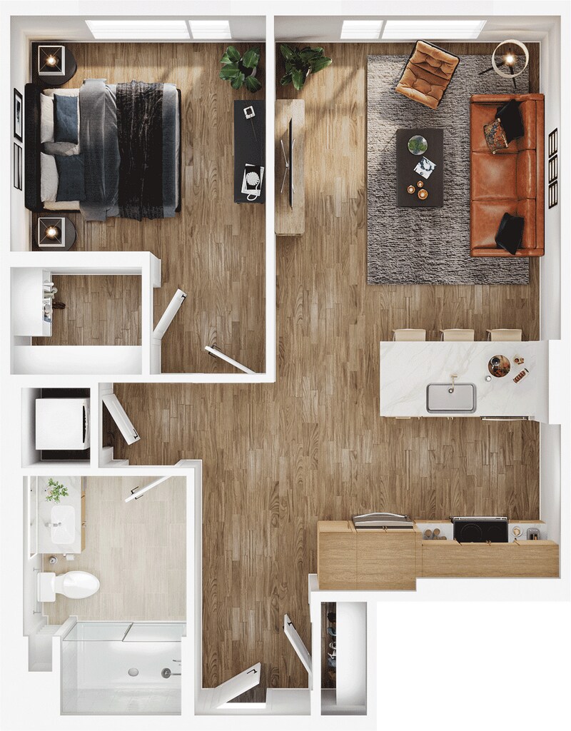 Estudio, 1 Baño, 553 pies²Disponible AhoraGalería del Modelo