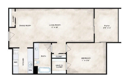 1 Dormitorio, 1.5 Baños, 1240 pies²El más grandeEsta opción tiene las unidades más grandes para este modeloGalería del Modelo