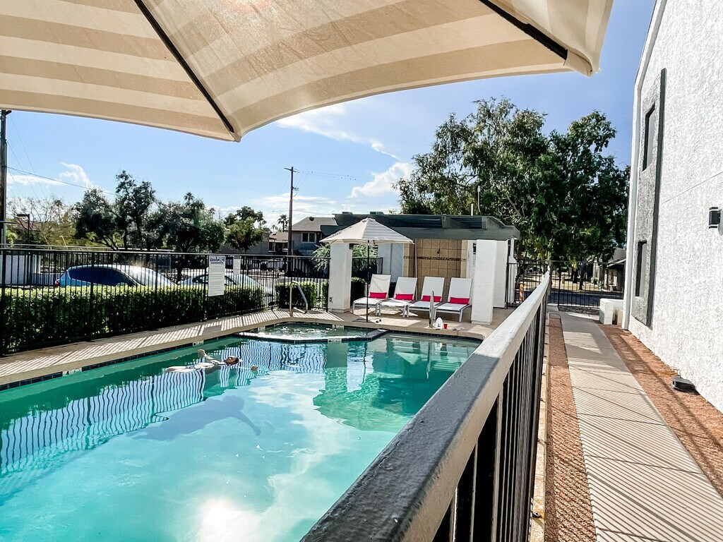 Ven a respirar con nosotros, en Los Pórticos en la soleada Scottsdale, AZ. Con 24 apartamentos recientemente renovados de 1 y 2 habitaciones, tómate un tiempo de descanso. Nuestros apartamentos orientados a la comodidad ofrecen tu propio paraíso con lujos cotidianos, como lavadoras/secadoras completamente nuevas, pisos de tablones de vinilo de madera, gabinetes blancos y modernos accesorios negros mate. Nuestros apartamentos varían de 600 a 900 pies cuadrados para brindarte todo el espacio que puedas necesitar para relajarte. A solo minutos del corazón del centro de Scottsdale con algunos de los restaurantes y actividades más encantadores de Arizona, como juegos de entrenamiento de primavera, la escena del bar del casco antiguo, un centro comercial increíble, parques sobre parques para ti y un amigo de cuatro patas y mucho más. También ubicado junto al acceso más conveniente a la autopista 101 para recorrer todo Arizona con facilidad. Nunca te estreses, ya que nuestra piscina, el jacuzzi y el amplio césped están ahí para ayudarte a mantener la paz. Date un respiro y relájate en tu paraíso privado con Los Pórticos. Ven a verlo por ti mismo, solo envía un mensaje de texto al 602-321-7899 para hacer un recorrido.