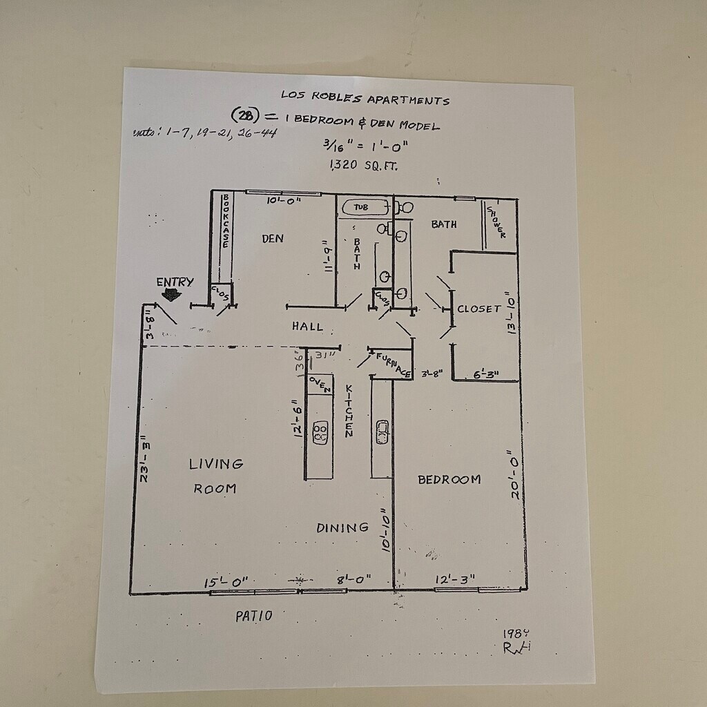 55+ living community! Los Robles features impeccably landscaped grounds with rose bushes throughout the community, as well as a heated pool for year-round enjoyment. Los Robles offers a variety of living options for residents, including four one-bedroom units measuring 796 sq. ft., 28 one-bedroom units with a den at 1,320 sq. ft., and 12 two-bedroom units with a den at 1,340 sq. ft.