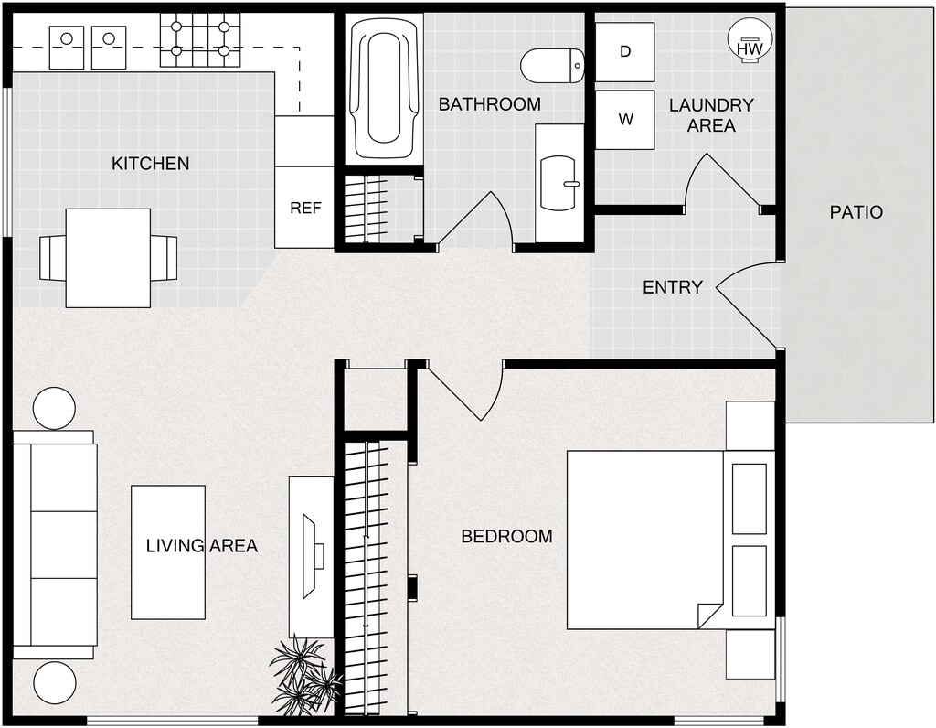 Modelo de apartamento: 1 Bedroom 1 Bathroom1 Dormitorio, 1 Baño, 645 sq ftDisponible Ahora![]()