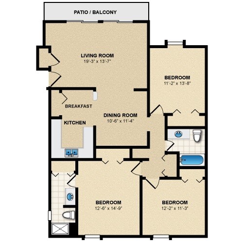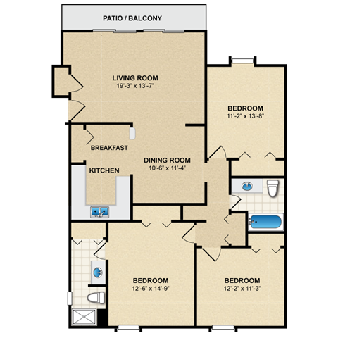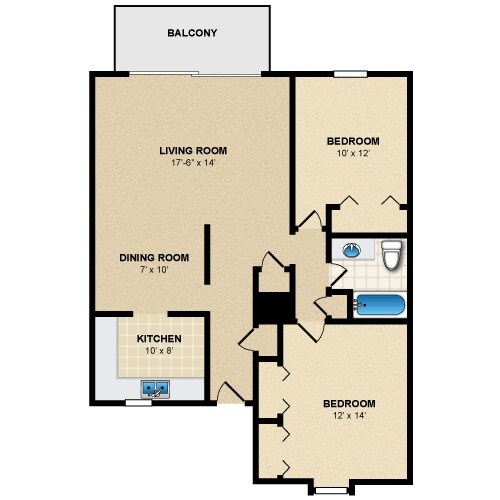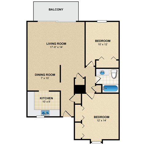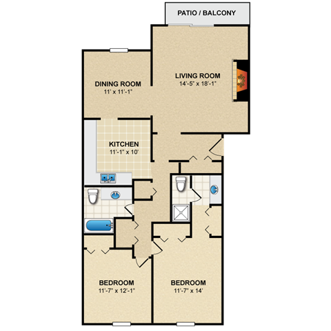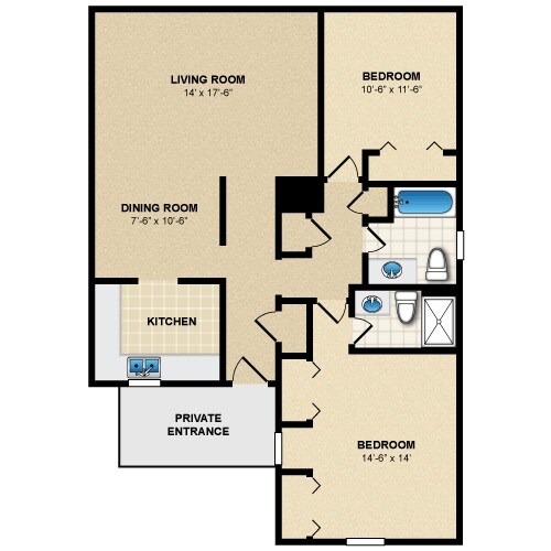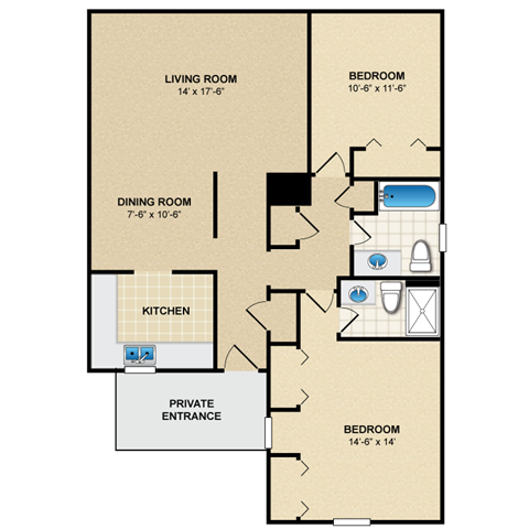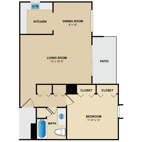 Modelo de apartamento: A41 Dormitorio, 1 Baño, 828 sq ftDisponible Ahora![]()