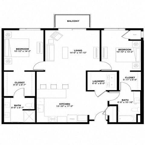 Modelo de apartamento: B1.1Desde $1,5171 Dormitorio, 1 Baño, 724 sq ftDisponible Ahora![]()