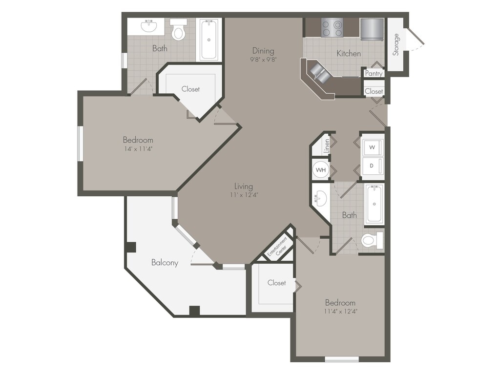 Modelo de apartamento: CarlyleLlame para Precios2 Dormitorios, 2 Baños, 1161 sq ftNo Disponible![]()