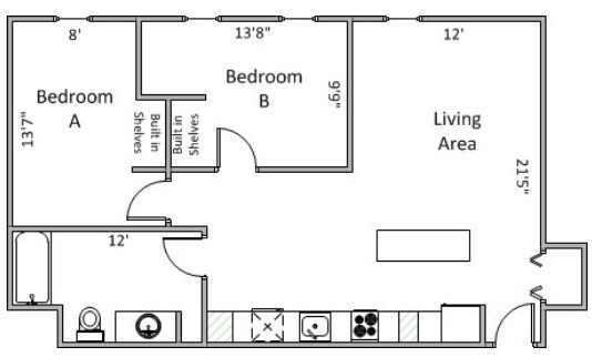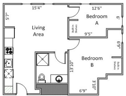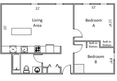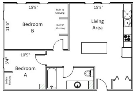 2 Bedroom 1 Bath - Plano 1 ![]()