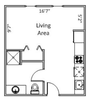 Estudio, 1 Baño, 300-505 pies²Galería del Modelo