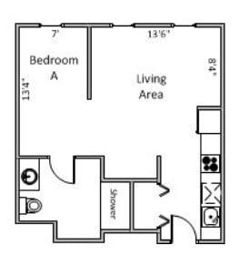 Modelo de apartamento: StudioEstudio, 1 Baño, 300-505 sq ftNo Disponible![]()