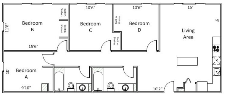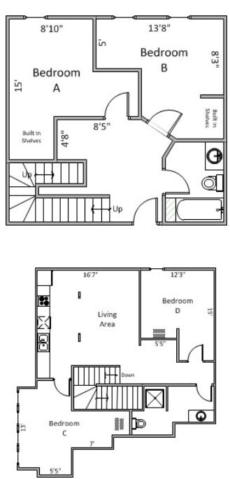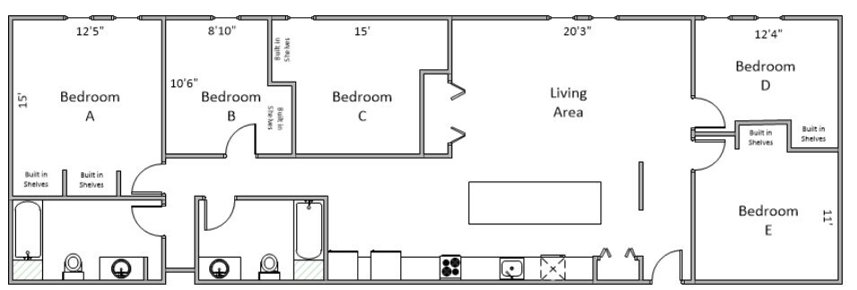 Modelo de apartamento: 5 Bedroom 2 Bathroom5 Dormitorios, 2 Baños, 1545-1631 sq ftNo Disponible![]()
