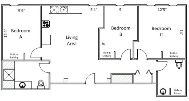 Modelo de apartamento: 3 bedroom, 1 Bath3 Dormitorios, 1 Baño, 970 sq ftNo Disponible![]()