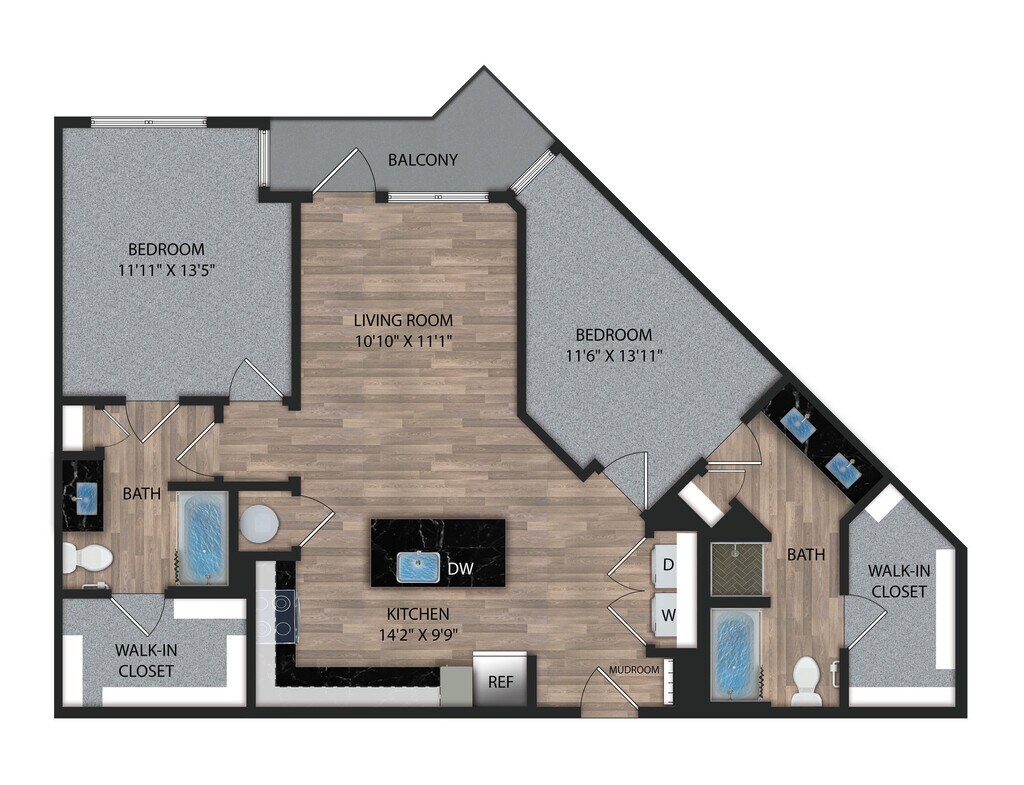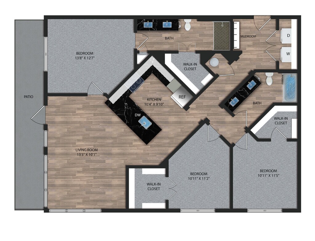 Modelo de apartamento: A3Desde $1,8781 Dormitorio, 1 Baño, 827 sq ftDisponible AhoraLos planos son representaciones artísticas. Todas las dimensiones son aproximadas. El producto y las especificaciones reales pueden variar en tamaño o detalle. No todas las características están disponibles en cada vivienda en alquiler. Por favor, consulta con un representante para obtener más detalles.