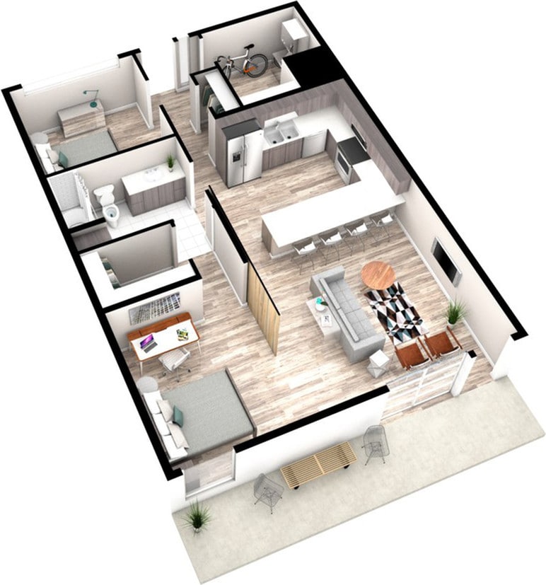 1 Dormitorio, 1 Baño, 727 pies²Disponible AhoraGalería del Modelo