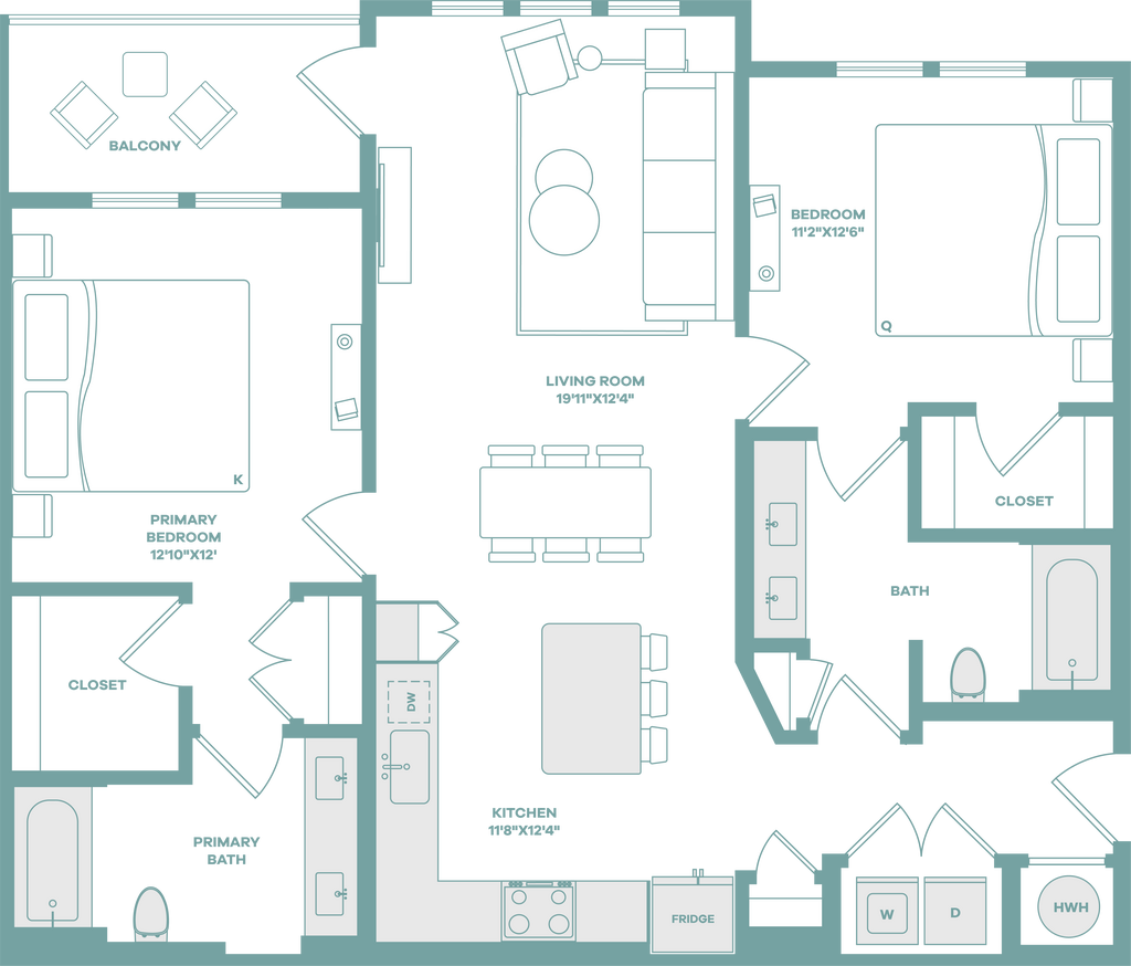 Modelo de apartamento: A4Desde $1,5351 Dormitorio, 1 Baño, 817 sq ftDisponible Ahora![]()