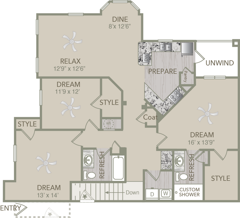 Modelo de apartamento: A3Desde $1,5801 Dormitorio, 1 Baño, 768 sq ftDisponible May 3, 2026![]()
