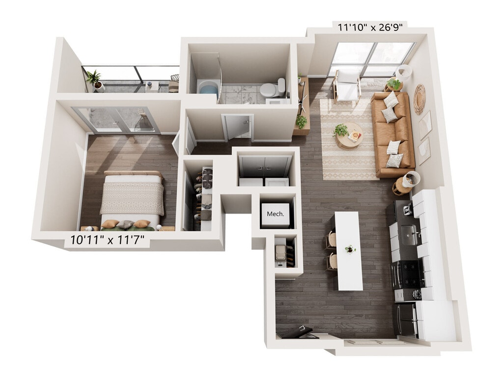 Modelo de apartamento: 1B$2,6791 Dormitorio, 1 Baño, 687 sq ftDisponible March 21, 2026![]()