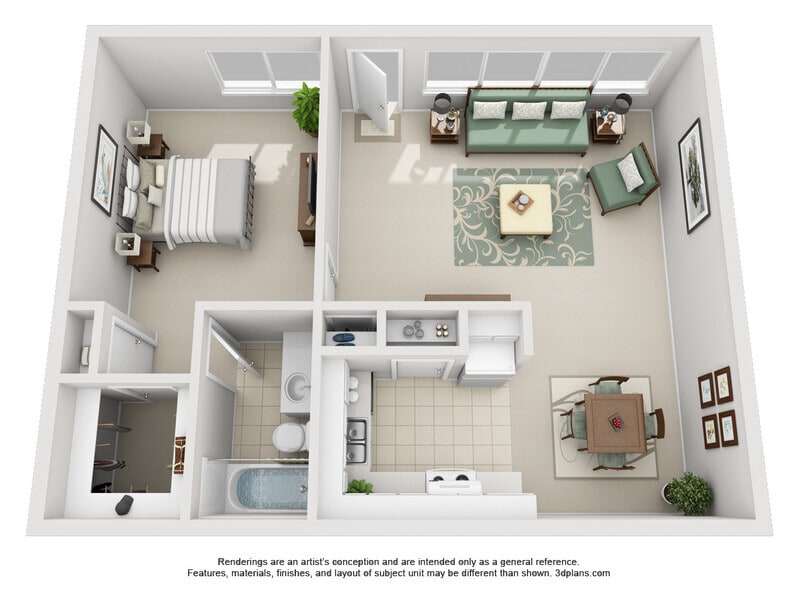1 Dormitorio, 1 Baño, 672 pies²Disponible AhoraGalería del Modelo