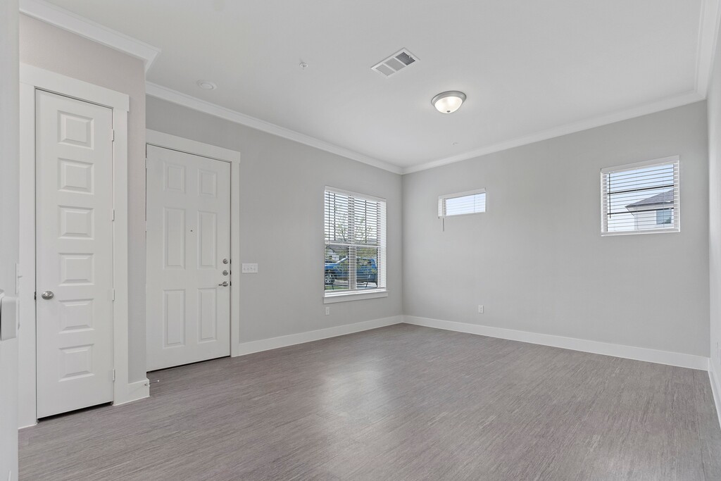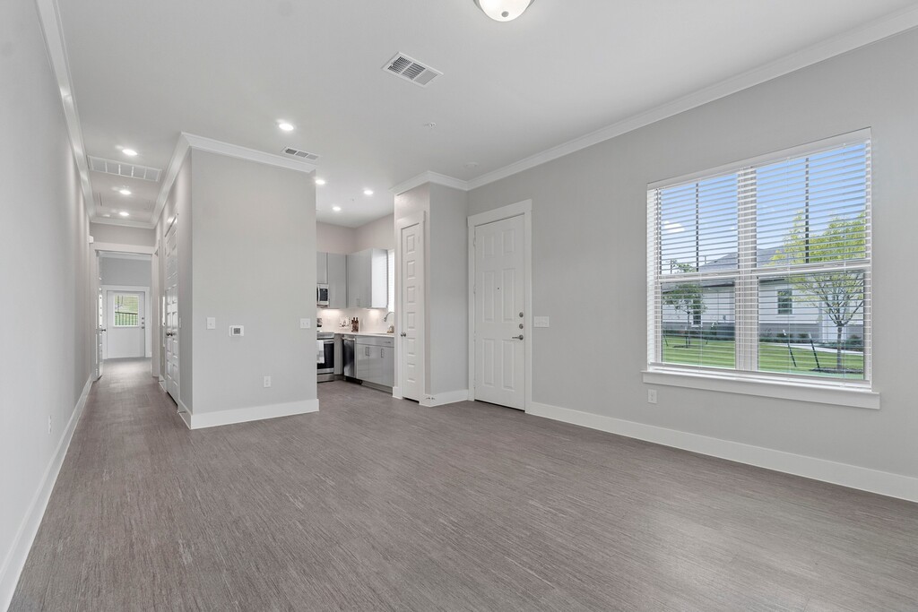 - Amplia moldura de corona en la sala de estar, el comedor y los dormitorios