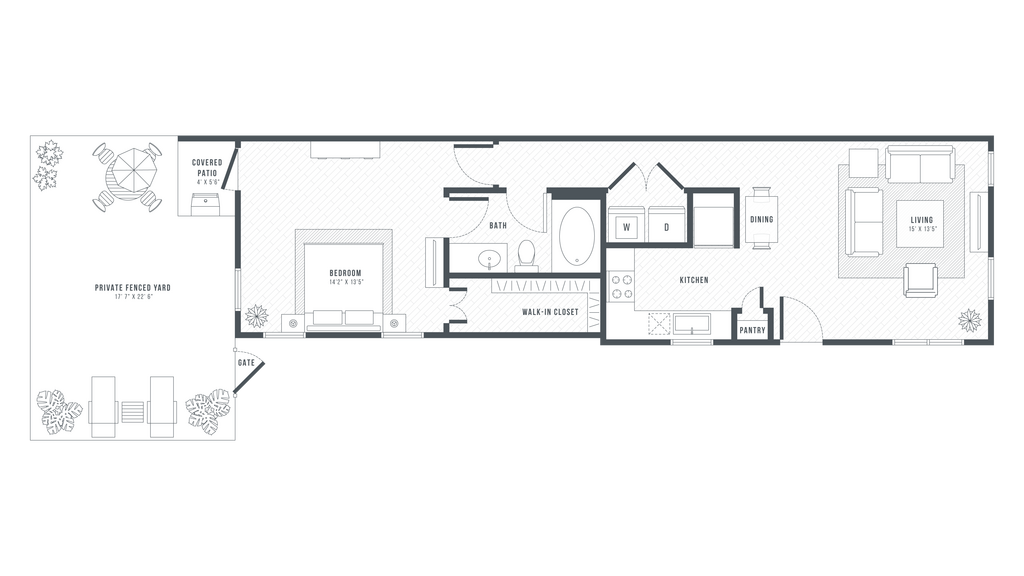 1 Dormitorio, 1 Baño, 764 pies²Disponible AhoraEl más baratoEsta opción tiene los precios más bajos para este modeloGalería del Modelo