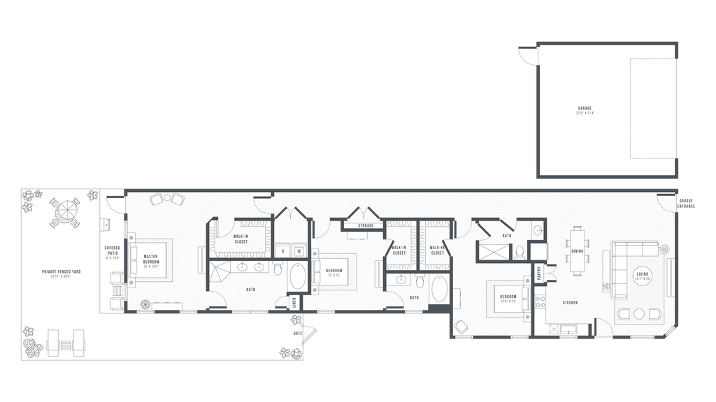 - Patios privados cercados y patios cubiertos con cuidado semanal del césped