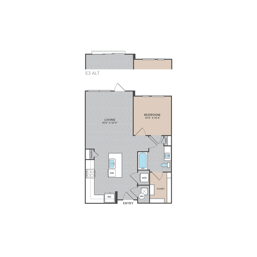 1 Dormitorio, 1 Baño, 786-818 pies²Disponible AhoraGalería del Modelo
