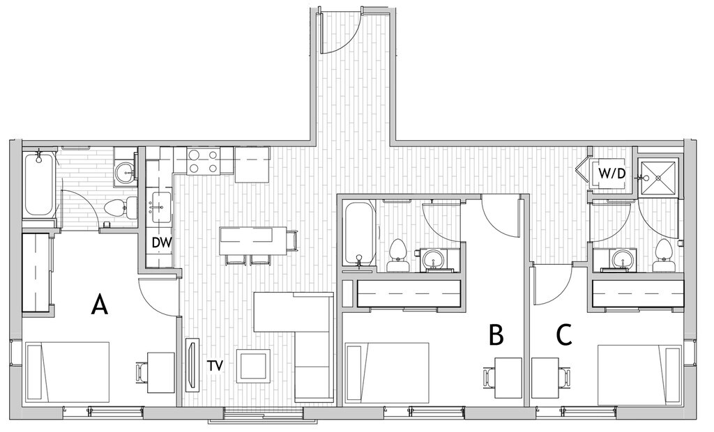 Lleva tu semestre al siguiente nivel con una vida estudiantil estilo boutique en Uncommon Fort Collins. Disfruta de un viaje diario rápido hasta las clases con nuestra excelente ubicación o relájate y aprende desde casa, con todas las comodidades que necesitas. Nuestros apartamentos de Fort Collins están ubicados junto al centro de la ciudad y el campus de la universidad, lo que hace que sea la ubicación perfecta para estudiantes y jóvenes profesionales. Sujeto a cambios. Se aplican restricciones. Los recorridos en persona están disponibles mediante cita, o bien puedes disfrutar de un recorrido virtual desde tu comodidad. En Uncommon Fort Collins, Colorado, nos inspiramos en los hermosos paisajes, la cultura de la aventura y los vibrantes residentes. Desde nuestra piscina estilo centro turístico hasta nuestra pared de escalada en roca, no tendrás que salir de nuestro complejo de apartamentos para disfrutar de Colorado. Esta publicación incluye planos de planta que pueden ser para el 20-21 o 21-22, año, ponte en contacto con la oficina de arrendamiento para obtener la disponibilidad opciones que se adaptan a tus necesidades.