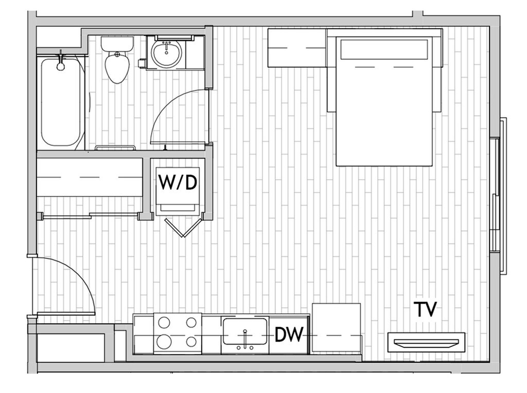 Estudio, 1 Baño, 360-384 pies²Disponible AhoraGalería del Modelo