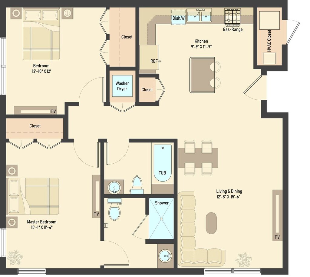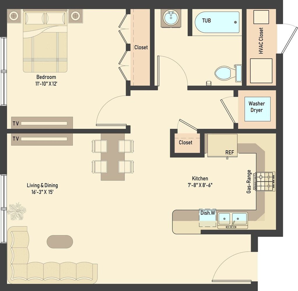 1 Dormitorio, 1 Baño, 723-819 pies²Disponible AhoraGalería del Modelo