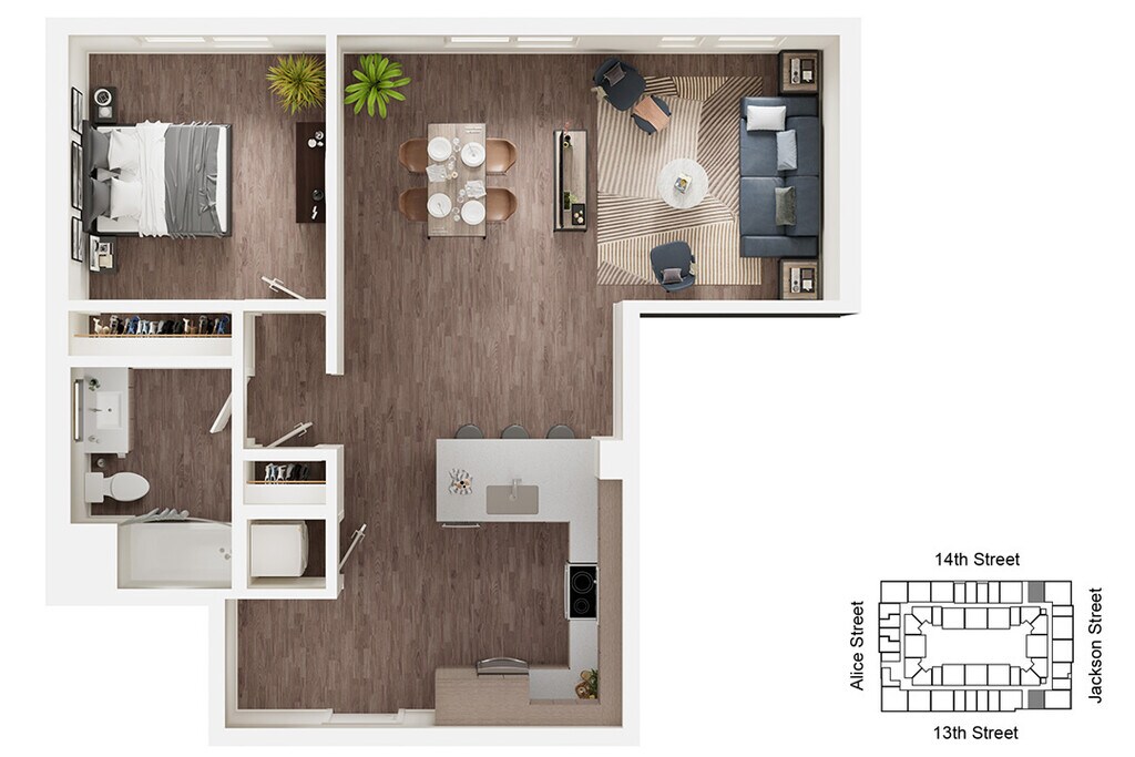 Modelo de apartamento: S1 StudioDesde $1,989Estudio, 1 Baño, 451-585 sq ftDisponible Ahora![]()