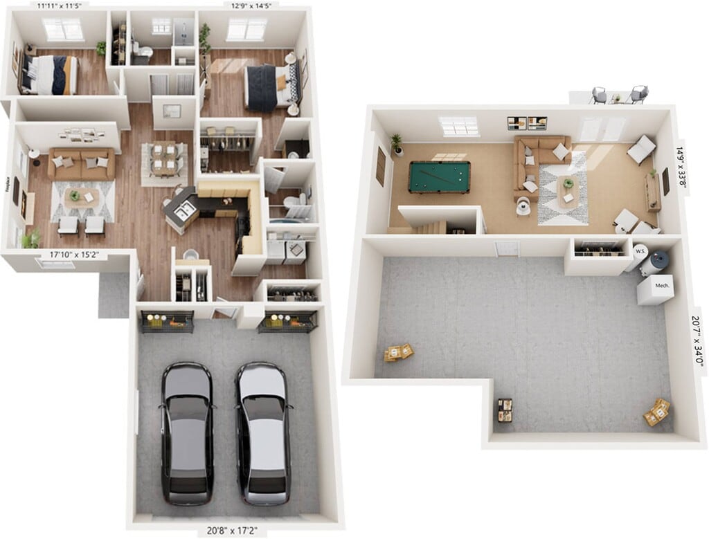 - Garaje adjunto para 2 autos para todas las casas adosadas