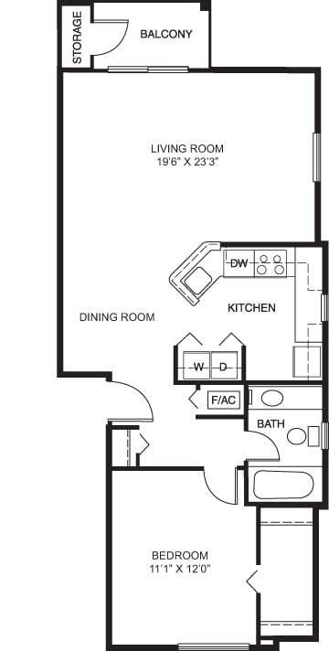 1 Dormitorio, 1 Baño, 710 pies²Disponible AhoraGalería del Modelo