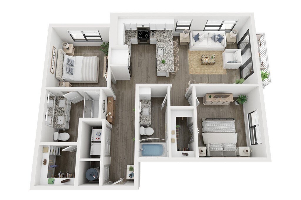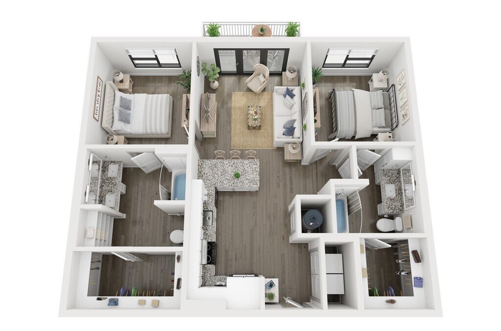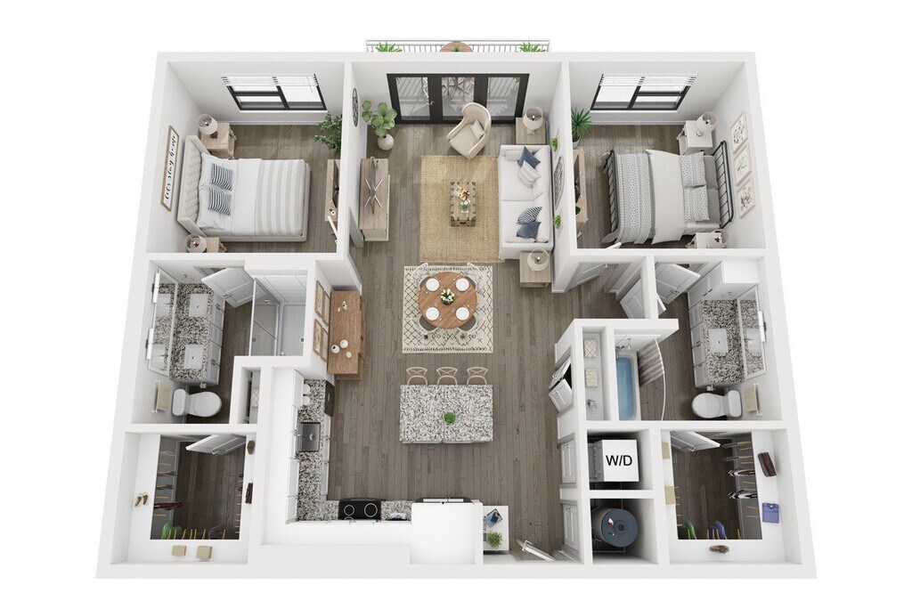 Modelo de apartamento: B62 Dormitorios, 2 Baños, 995 sq ftDisponible December 12, 2025![]()