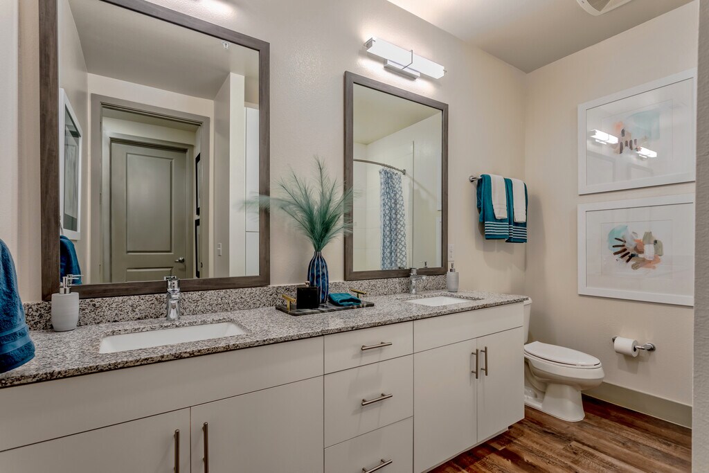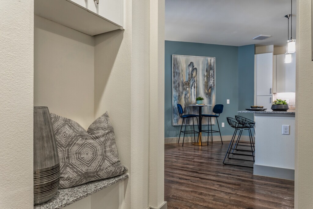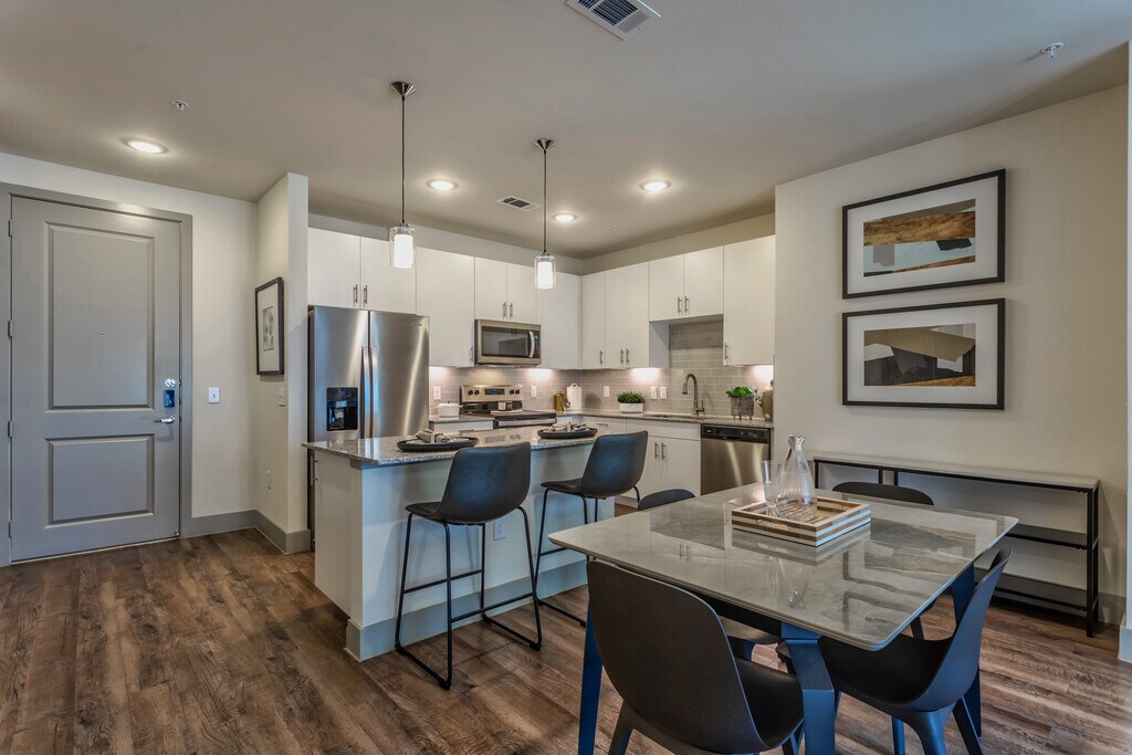 Disfruta de un lujoso estilo de vida suburbano en LynnCora Apartments. Ofrecemos un excelente paquete de comodidades y una colección de apartamentos tipo estudio, de una y dos habitaciones con tecnología inteligente del hogar que te hará sonreír desde el primer día. La obra maestra de nuestros apartamentos en Grand Prairie, TX, es la ubicación central cerca del centro histórico de Grand Prairie, a mitad de camino entre Dallas y Fort Worth. Encuentra tu lugar de ocio favorito y disfruta de cada momento. En el exterior, puedes elegir entre la piscina estilo centro turístico con cabañas y sillas de salón o el patio con hamacas, parrillas y un brasero. En el interior, tienes acceso a una casa club de 9,000 pies cuadrados, una sala de juegos y una estación de café. Para ayudarte a alcanzar tus objetivos de ejercicio, preparamos un gimnasio disponible las 24 horas, un estudio de spinning y un espacio de yoga. Tampoco nos hemos olvidado de los amigos de cuatro patas: nuestros apartamentos en alquiler en Grand Prairie tienen un parque para perros y una estación de lavado. Descubre tu nuevo hogar un paso a la vez. La sala de estar será la primera en darte la bienvenida con pisos estilo madera y amplias ventanas. Luego, el área de comedor y la cocina de concepto abierto cuentan con una isla, una despensa, gabinetes de madera noble, electrodomésticos de acero inoxidable y encimeras de granito. Las habitaciones ostentan vestidores grandes donde puedes organizar tus prendas, mientras que los baños tienen bañeras profundas e incluso tienen lavabos dobles. Además, se incluyen lavadoras y secadoras, conexiones para televisión por cable, ventiladores de techo, acceso a Internet de alta velocidad y garajes o estacionamientos techados. ¿Deseas saber más acerca de estos apartamentos de lujo en Grand Prairie, TX? ¡Programa un recorrido!