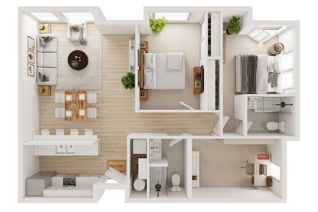 2 Dormitorios, 1 Baño, 1080 pies²Disponible AhoraGalería del Modelo