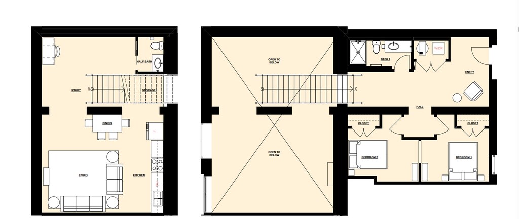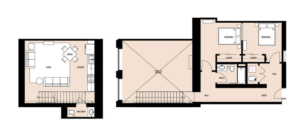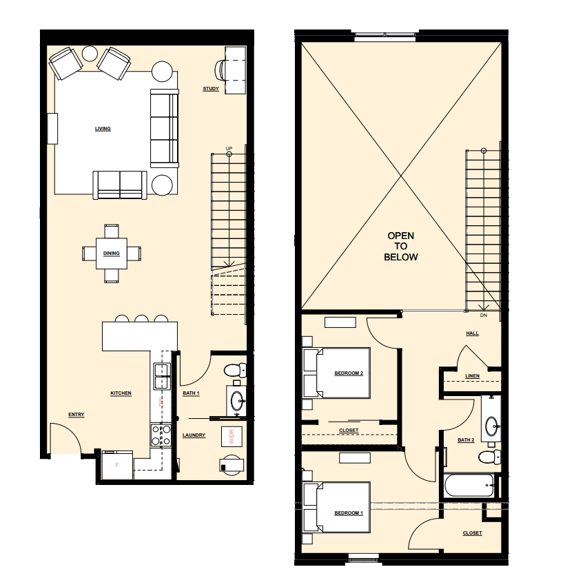 1 Dormitorio, 1 Baño, 688-800 pies²Galería del Modelo