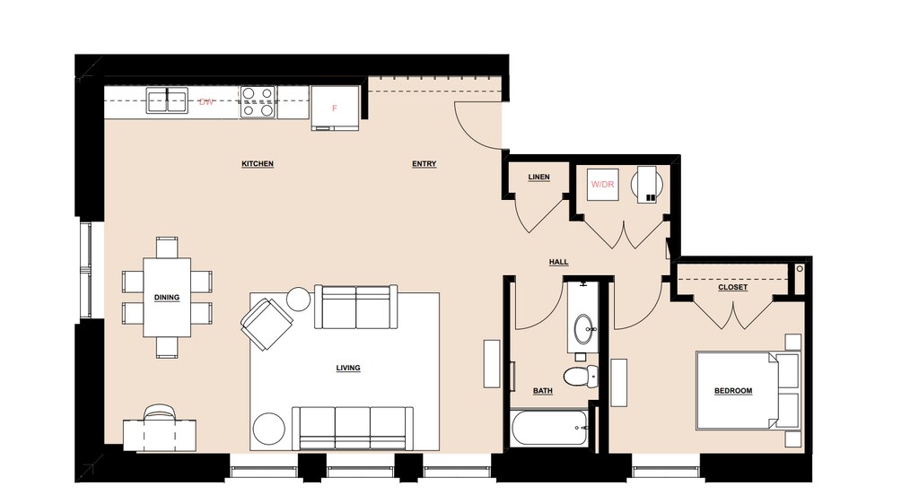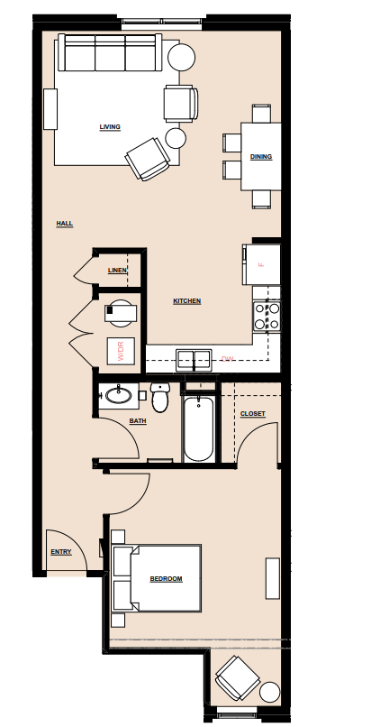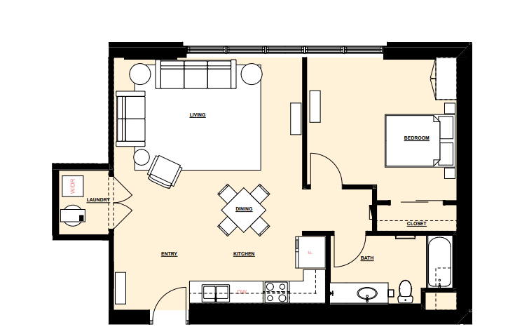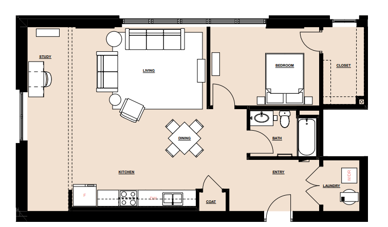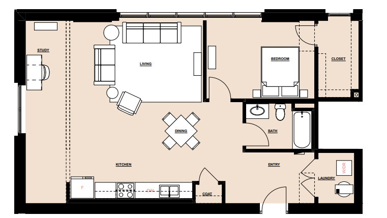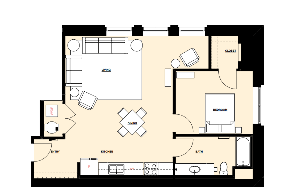 1 Dormitorio, 1 Baño, 710-772 pies²Galería del Modelo