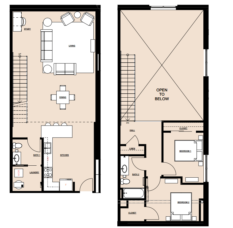 1 Dormitorio, 1 Baño, 919 pies²Disponible AhoraGalería del Modelo