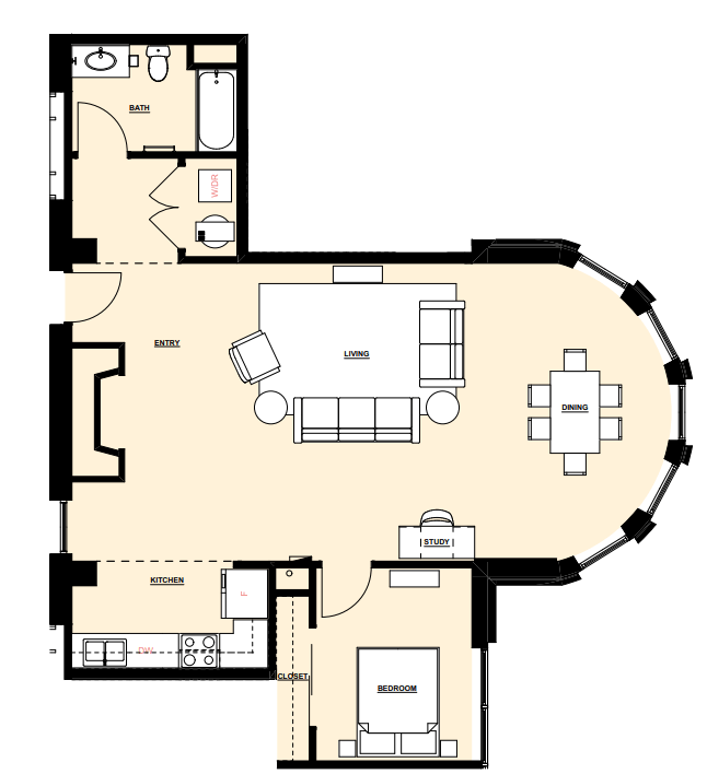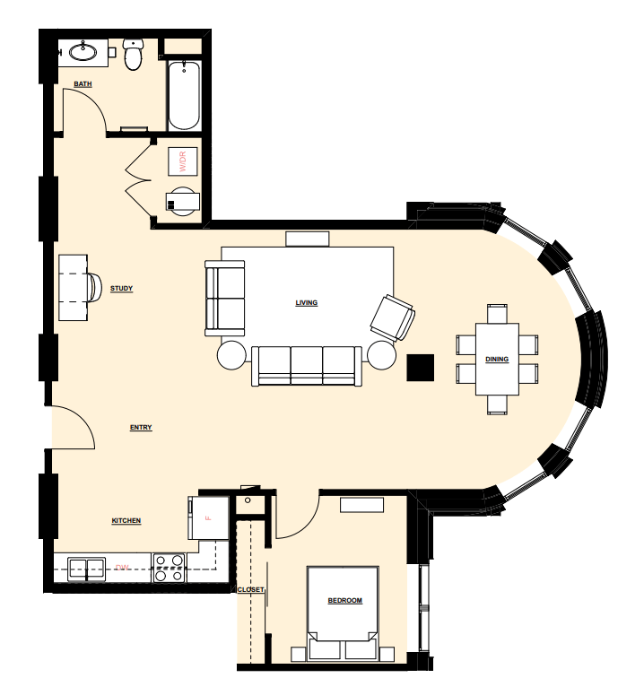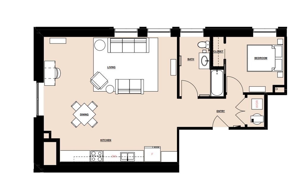 1 Dormitorio, 1 Baño, 1142 pies²Disponible AhoraGalería del Modelo