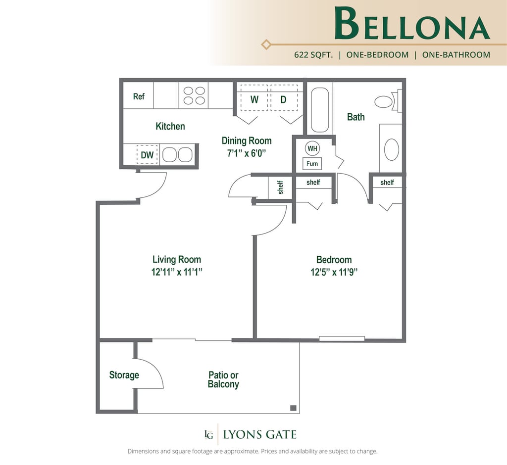 Modelo de apartamento: Bellona$8911 Dormitorio, 1 Baño, 622 sq ftDisponible Ahora![]()