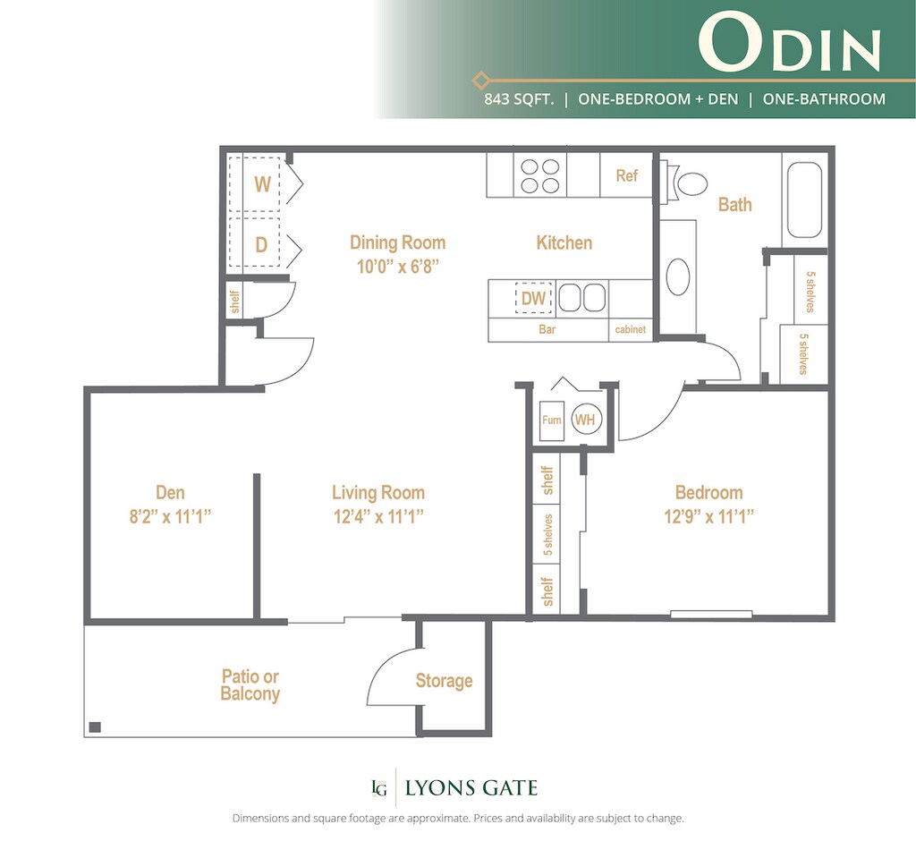 Modelo de apartamento: OdinLlame para Precios1 Dormitorio, 1 Baño, 843 sq ftNo Disponible![]()