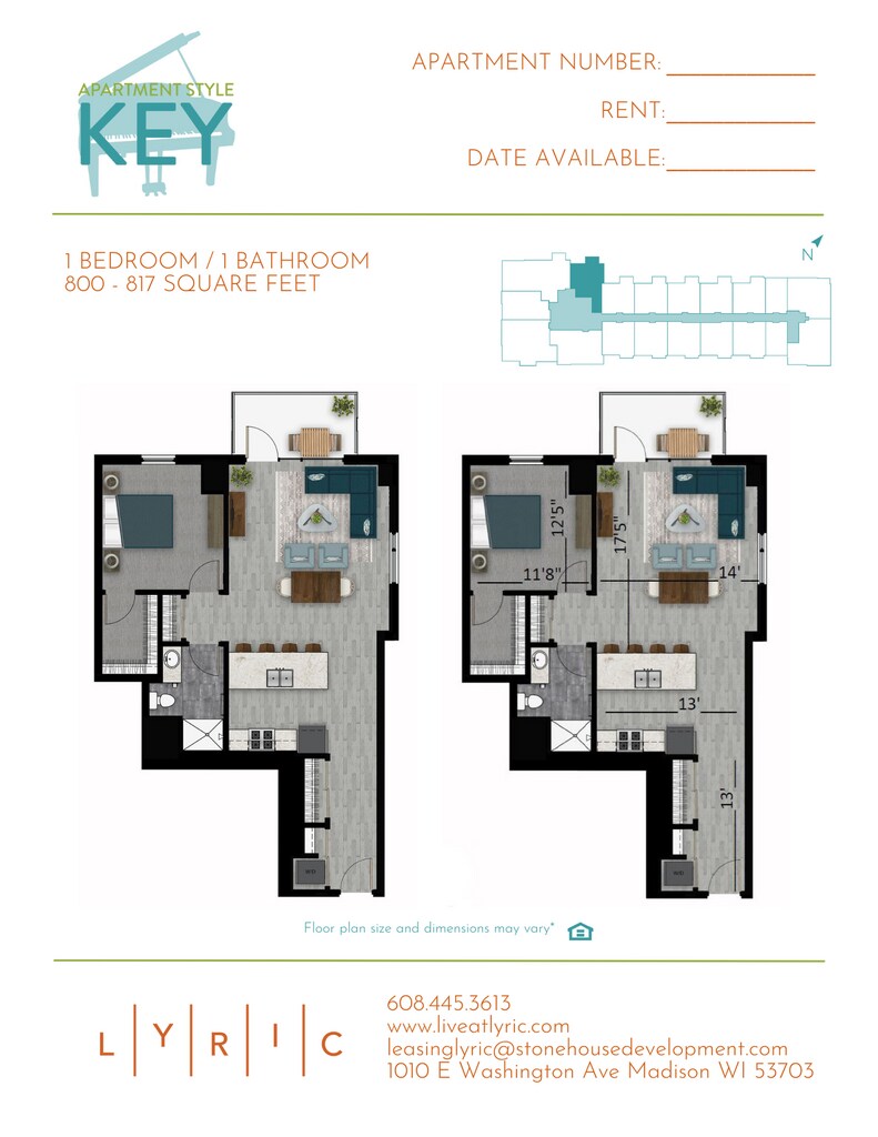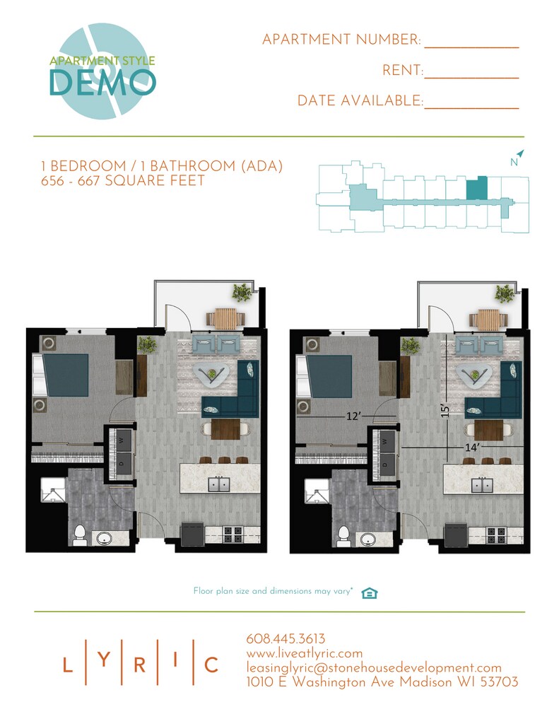 Lyric se encuentra en el Barrio Tenney-Lapham y el código postal 53703 de Madison, WI. Esta comunidad está gestionada profesionalmente por Stone House Development, Inc.