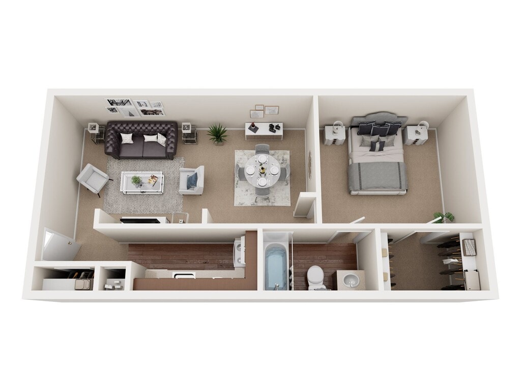 1 Dormitorio, 1 Baño, 802 pies²El más grandeEsta opción tiene las unidades más grandes para este modeloGalería del Modelo