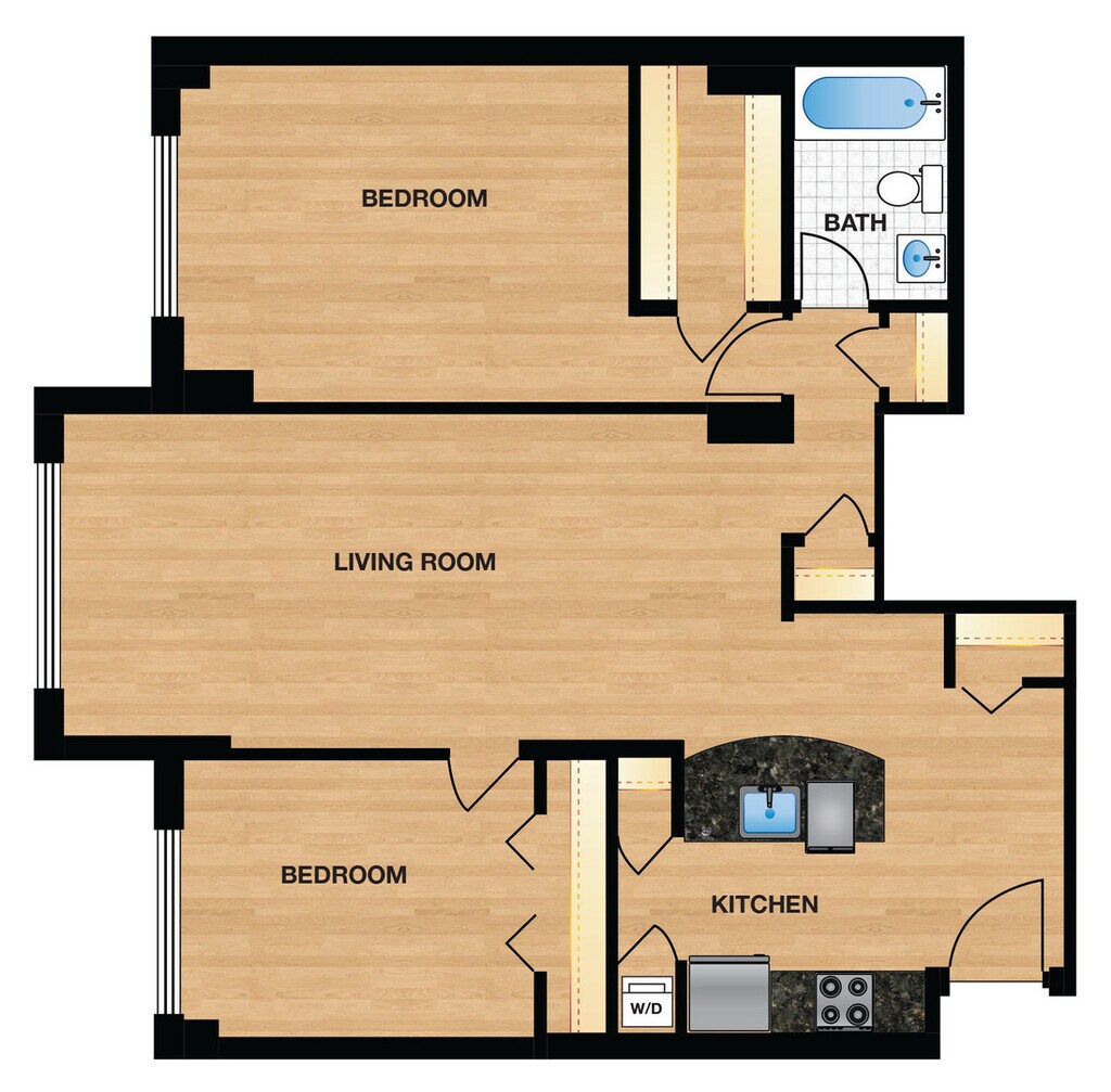 Unidad de apartamento: 0112Modelo de apartamento: 2BR/1BA2 Dormitorios, 1 Baño, 912 sq ftDisponible Ahora![]()