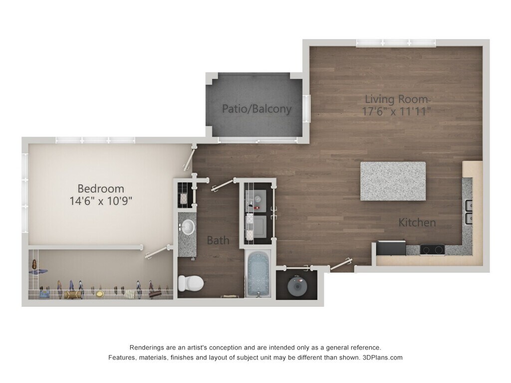 1 Dormitorio, 1 Baño, 899 pies²Galería del Modelo